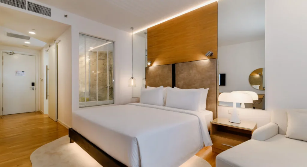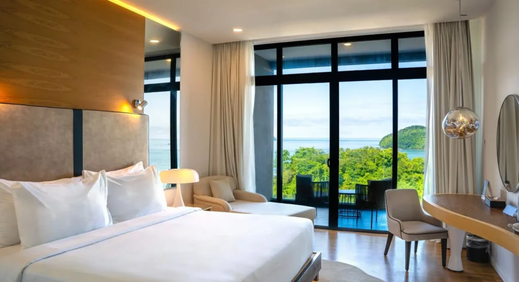 Reka bentuk dalaman menggabungkan gaya kontemporari dengan sentuhan pulau, dan kebanyakan unit menawarkan pemandangan laut atau gunung dari balkoni peribadi. Susun atur mesra keluarga, dapur dalam suite, serta kemudahan moden seperti TV pintar dan Wi-Fi memberikan keselesaan dan fleksibiliti maksimum kepada tetamu.